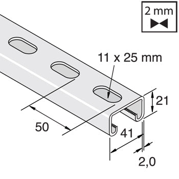 - JCI - Profilato in acciaio zincato asolato con bordi dentellati, canale singolo (41x21x2 mm) - K3100T10