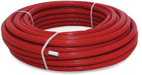 Tubo multistrato in rotoli rivestito SESTA PERT/AL/PERT - UNI-EN-ISO 21003 10 BAR/95 °C. Rivestito con guaina in polietilene espanso a bassa densità a cellule chiuse. Pellicola di finitura esterna PE-LD, conduttività termica a 40 °C 0,0397 W/M °C esente da CFC e HCF, classe di reazione al fuoco BL-s1-d0. spessore di isolamento conforme al DPR n° 412 del 26/08/1993.